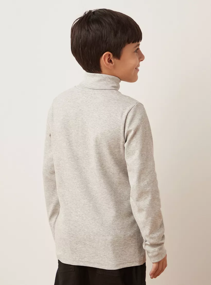 Elevate your wardrobe with our Juniors Solid Turtleneck T-shirt with Long Sleeves. Crafted from a soft and breathable fabric, this stylish turtleneck ensures comfort without compromising on fashion. The long sleeves provide extra warmth, making it an ideal choice for layering during chilly days or wearing solo for a sleek look.