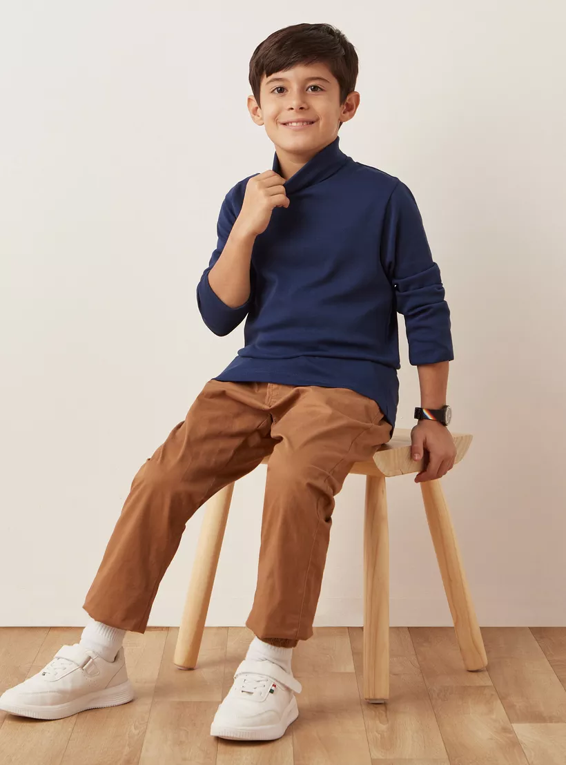 Elevate your wardrobe with our Juniors Solid Turtleneck T-shirt with Long Sleeves. This stylish and versatile top is crafted from a soft, breathable fabric that promises comfort and ease, making it perfect for everyday wear. The turtleneck design not only adds a chic touch but also provides extra warmth, making it an ideal choice for cooler days.