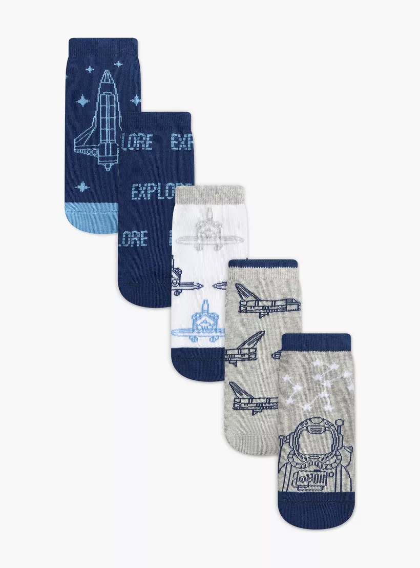 Juniors Space Print Non-Terry Ankle Length Socks – Set of 5