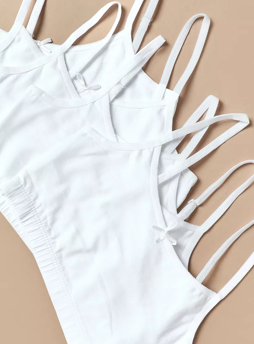 Refresh your darling’s lingerie collection with this set of five basic bras. Crafted for utmost comfort, the bras can be teamed with t-shirts or dresses and come with adjustable spaghetti straps.