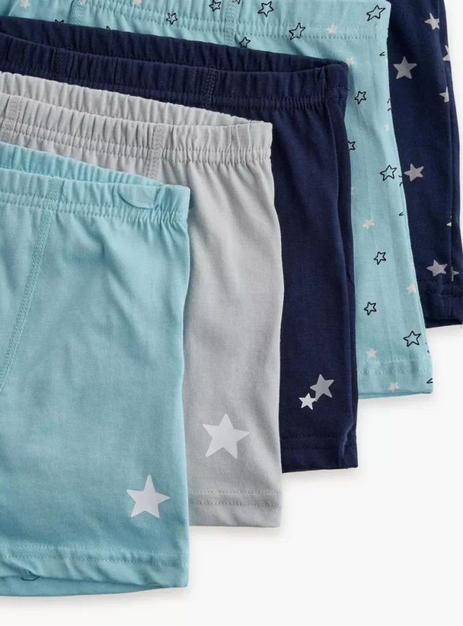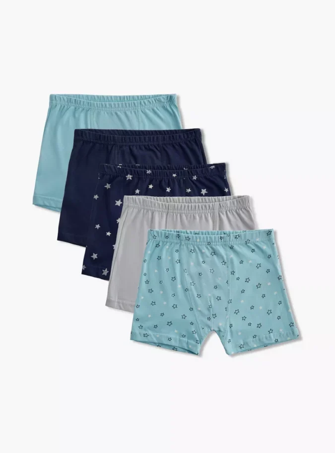 Juniors Star Print Boxers with Elasticated Waistband – Set of 5
