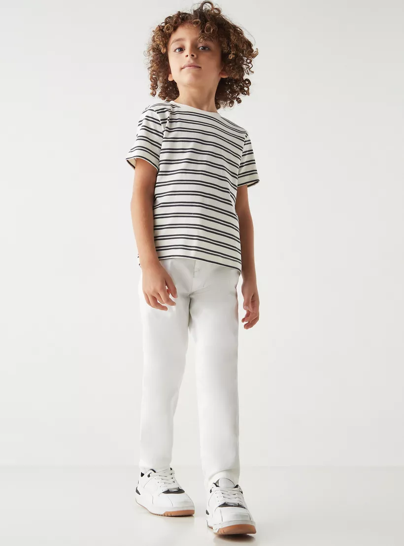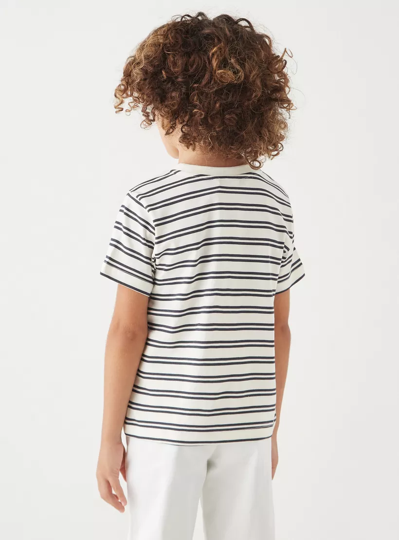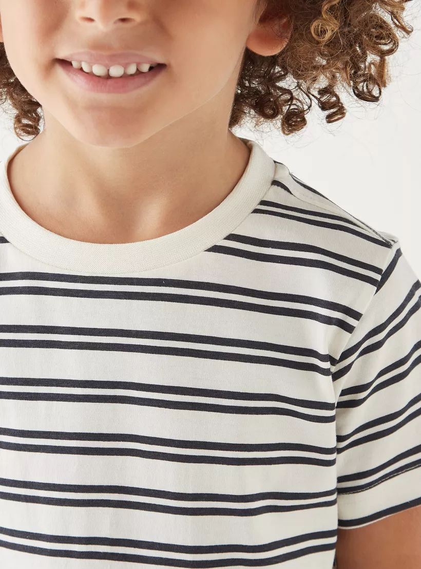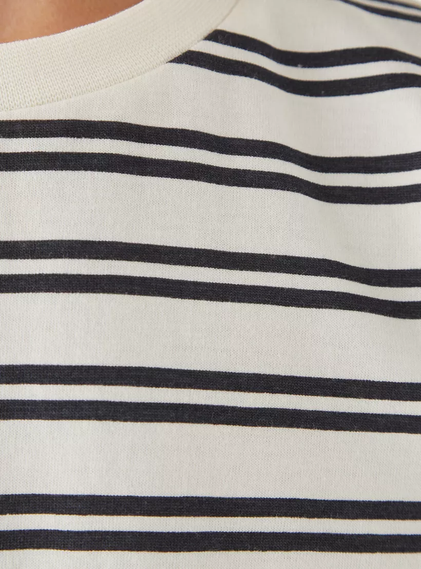 Juniors Stripe Print T-Shirt with Short Sleeves and Crew Neck