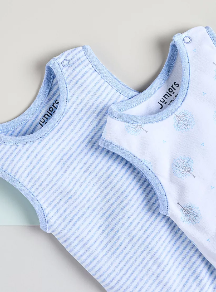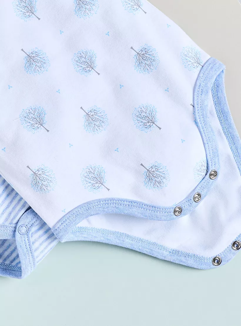 A set of two bodysuits in soft, breathable cotton that are perfect for your little one to wear all day long. They feature a stretchy fit and snap closure for easy dressing, and are decorated with cute striped and tree prints.