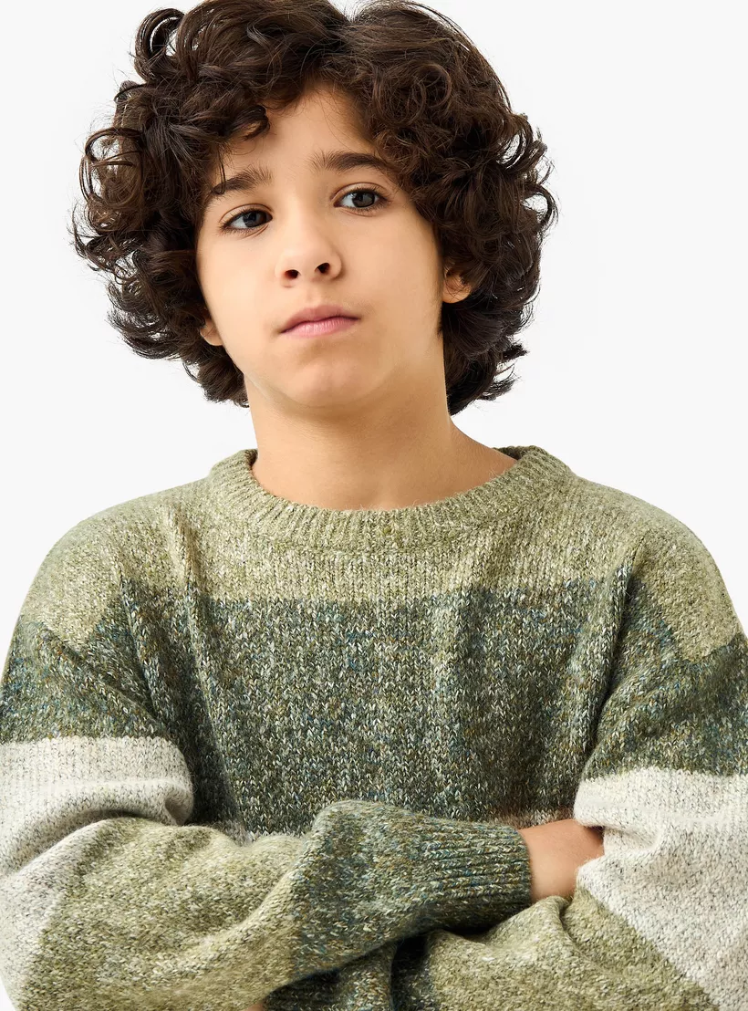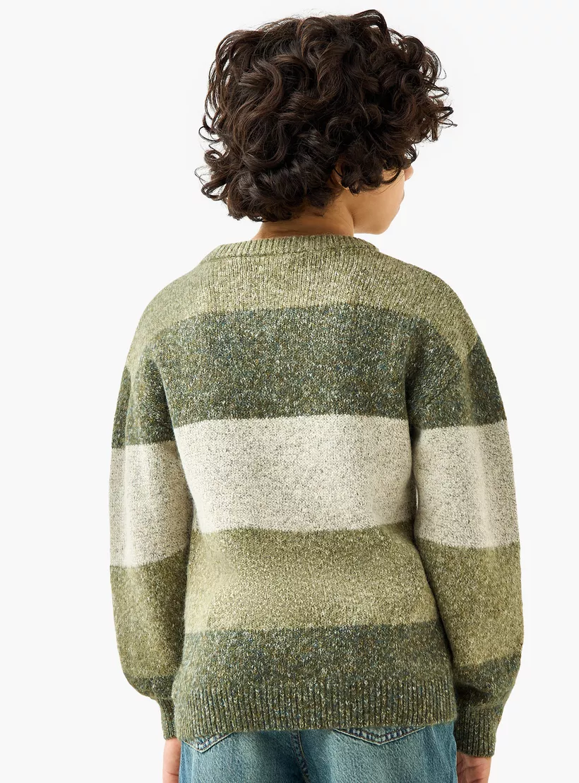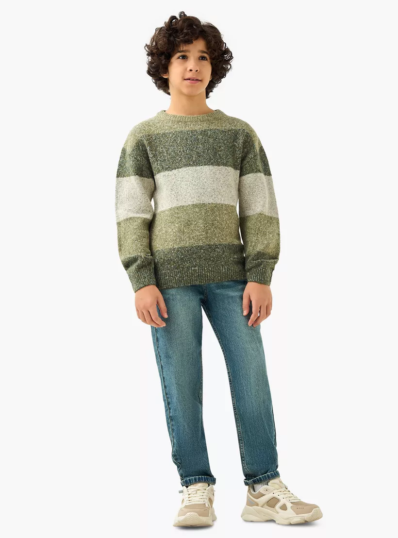 Juniors Striped Crew Neck Pullover with Long Sleeves