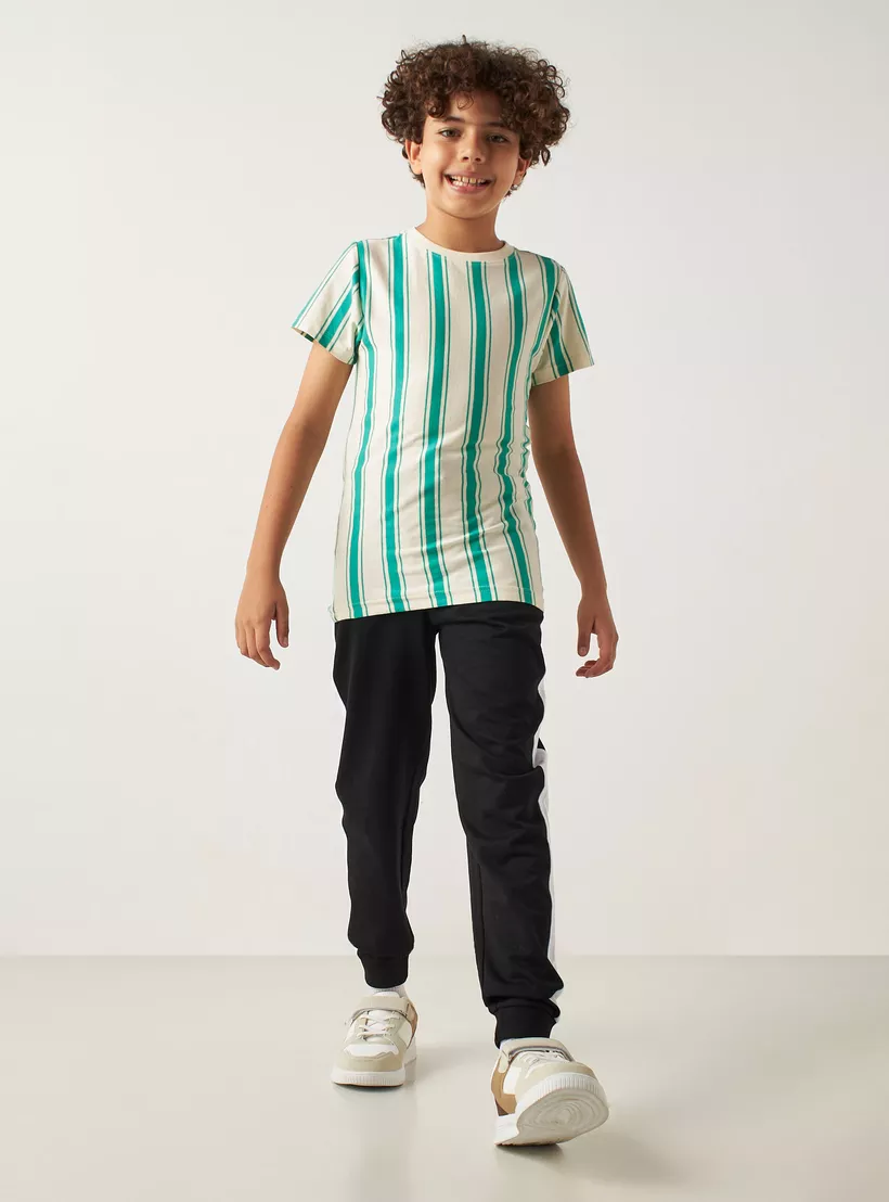 Juniors Striped Crew Neck T-shirt with Short Sleeves
