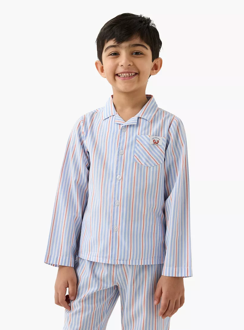 The Juniors Striped Shirt and Pyjama Set is designed for kids who value both comfort and style. Crafted from soft, breathable fabric, this two-piece set features a classic striped shirt paired with matching pyjamas, making it perfect for everyday wear, bedtime, or lounging at home. The playful stripes add a trendy touch, while the lightweight material ensures your child stays comfortable all day or night.