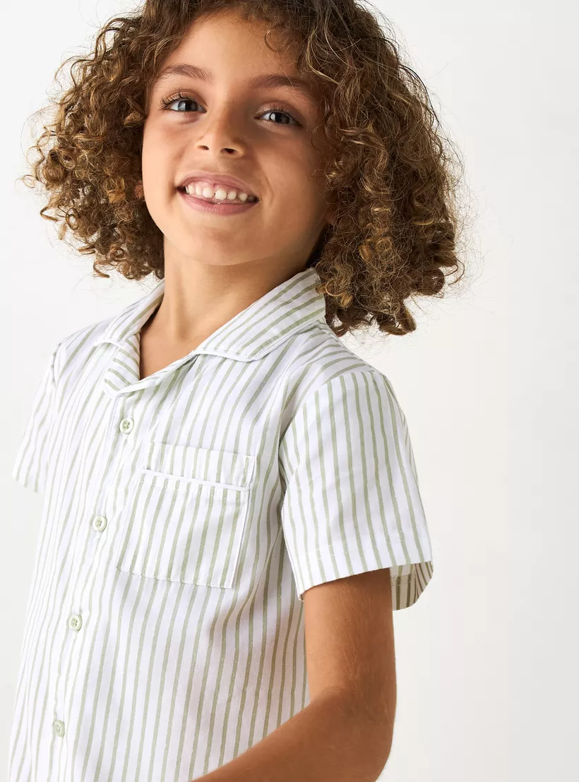 Juniors Striped Short Sleeves Shirt and Shorts Set