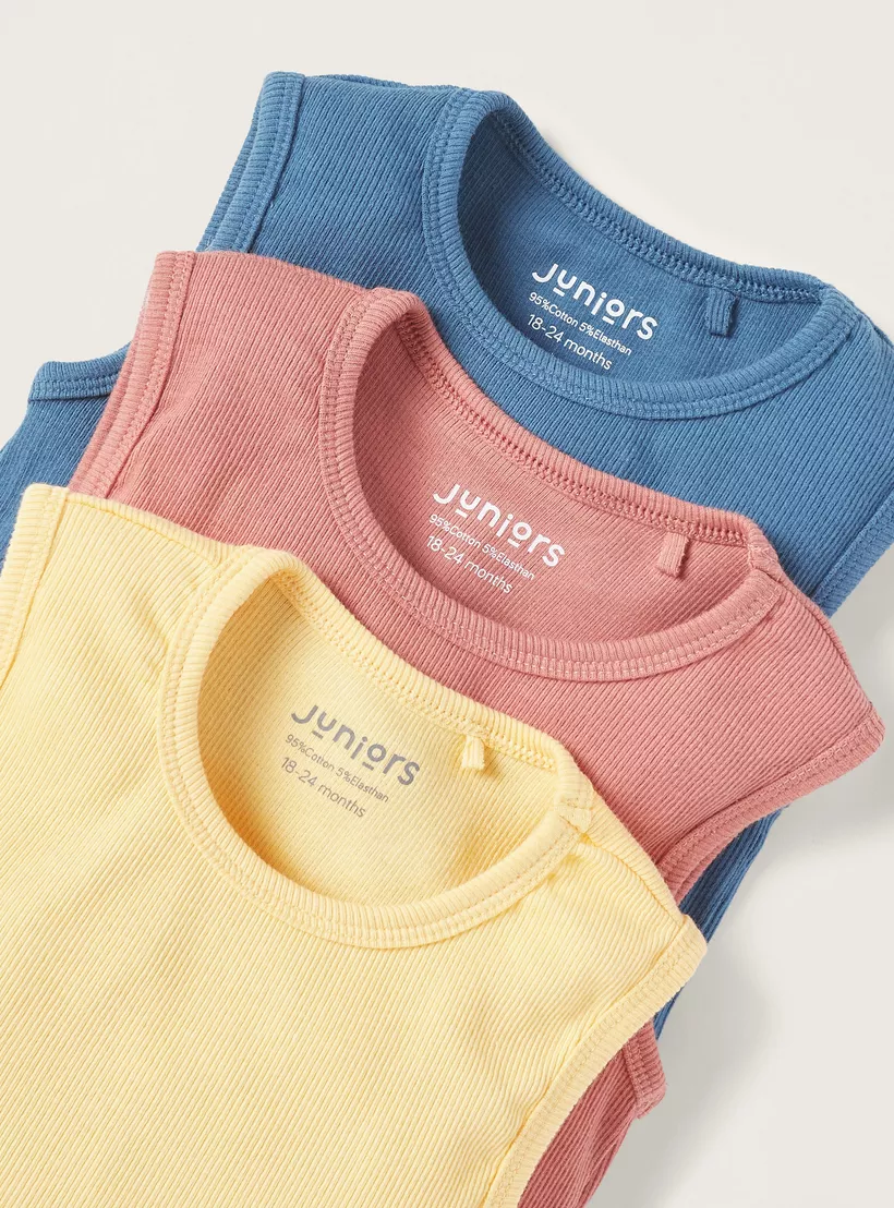 Juniors Textured Bodysuit with Snap Button Closure – Set of 3