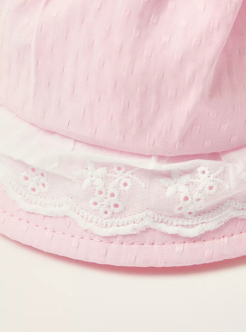 • The primary material has a distinct texture, such as a crochet pattern, a ribbed knit, or a straw-like weave. This not only adds depth and a tactile feel but also makes the hat more visually dynamic than one made from flat fabric.
