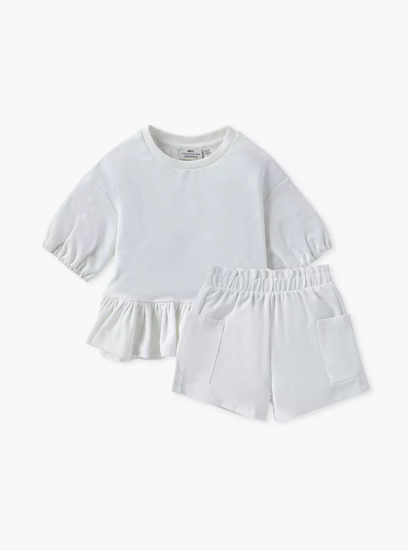 • Complete Outfit: Includes a floral T-shirt and coordinating shorts for a ready-to-wear set.