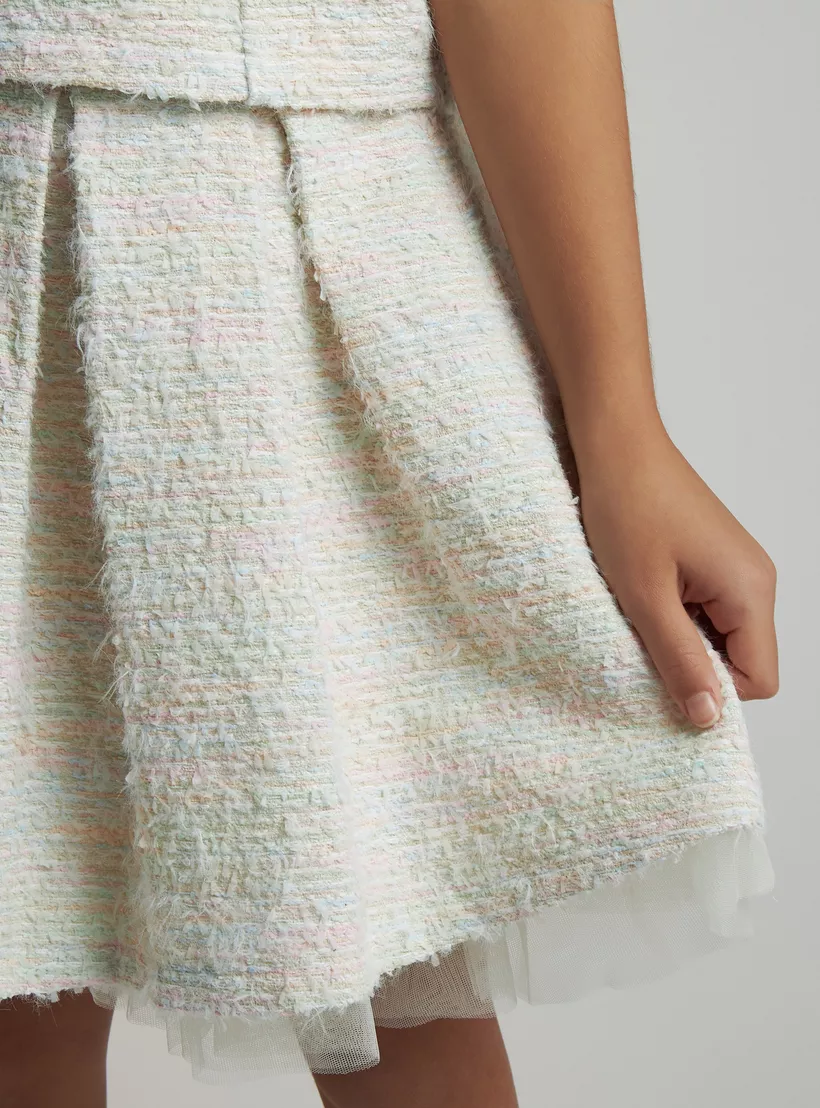 The Juniors Textured Pleated Skirt is a stylish and versatile wardrobe essential designed for young fashion enthusiasts. With its textured fabric and flowing pleats, this skirt adds dimension and movement to any outfit. Perfect for casual outings, school, or weekend get-togethers, it pairs effortlessly with tops, sweaters, or jackets for a chic, trendy look. Comfortable yet fashionable, this skirt is a must-have for juniors who want a blend of comfort and style.