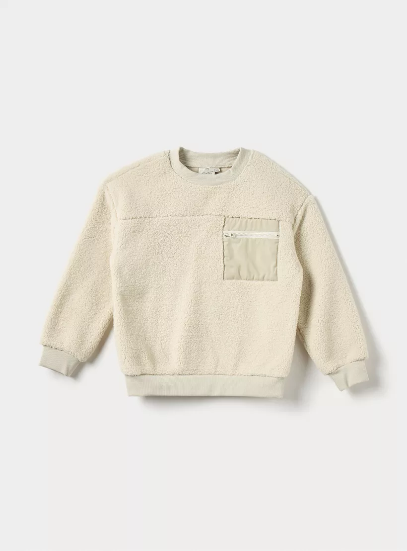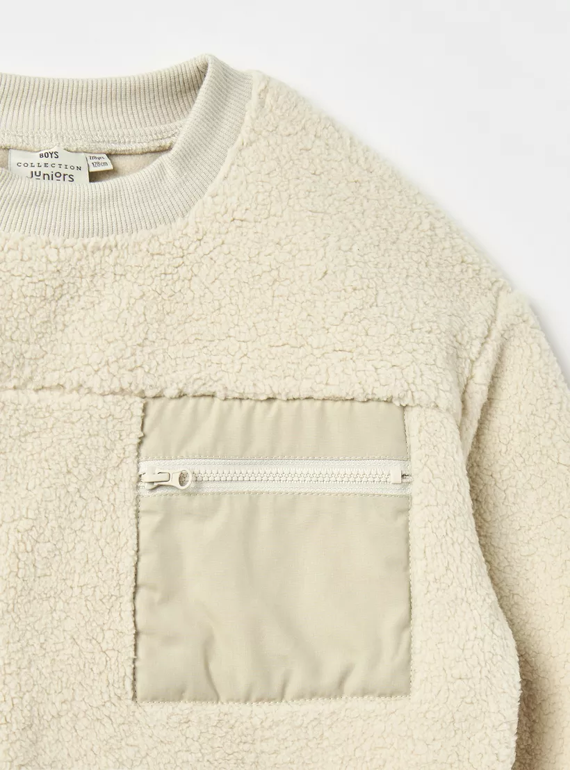 Juniors Textured Pullover with Crew Neck and Long Sleeves