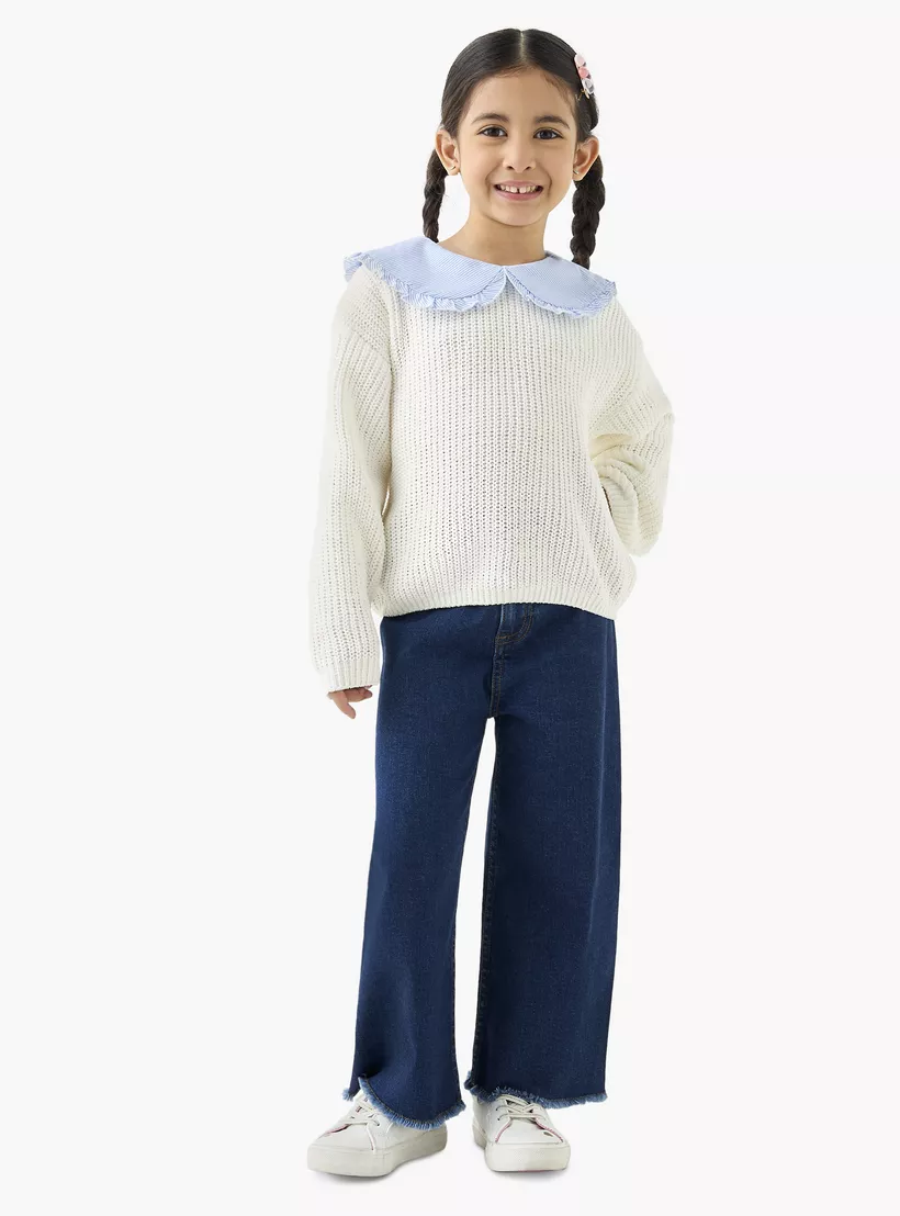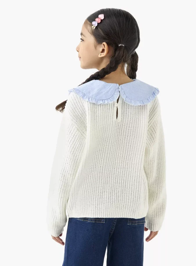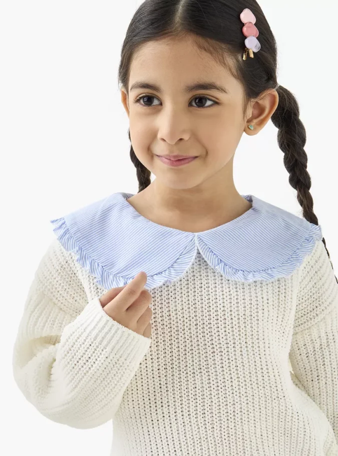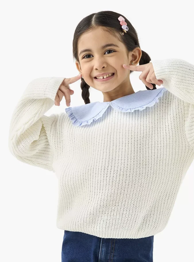 Give your little one’s wardrobe a touch of charm with the Juniors Textured Pullover featuring a classic Peter Pan collar. Designed with a soft textured fabric, this pullover combines timeless style with cozy comfort. The elegant collar detail adds a refined look, while the long sleeves keep your child warm and stylish throughout the season. Perfect for casual outings, school wear, or family gatherings, this pullover is both versatile and fashionable.