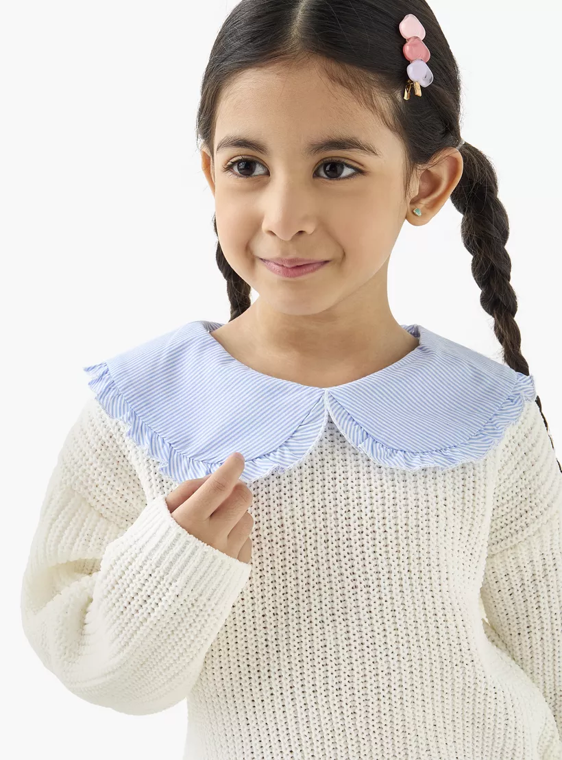 Juniors Textured Pullover with Peter Pan Collar and Long Sleeves