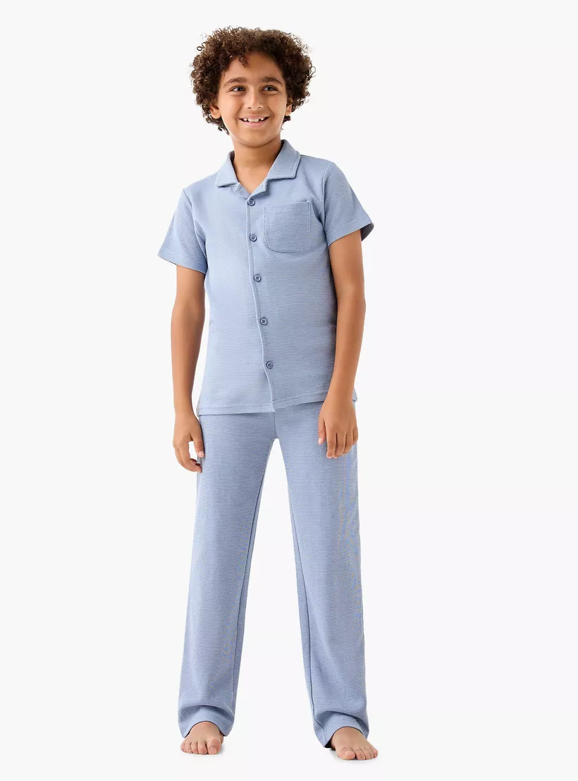 Two-Piece Set: Includes a textured shirt and coordinating pyjama bottoms for a complete look.