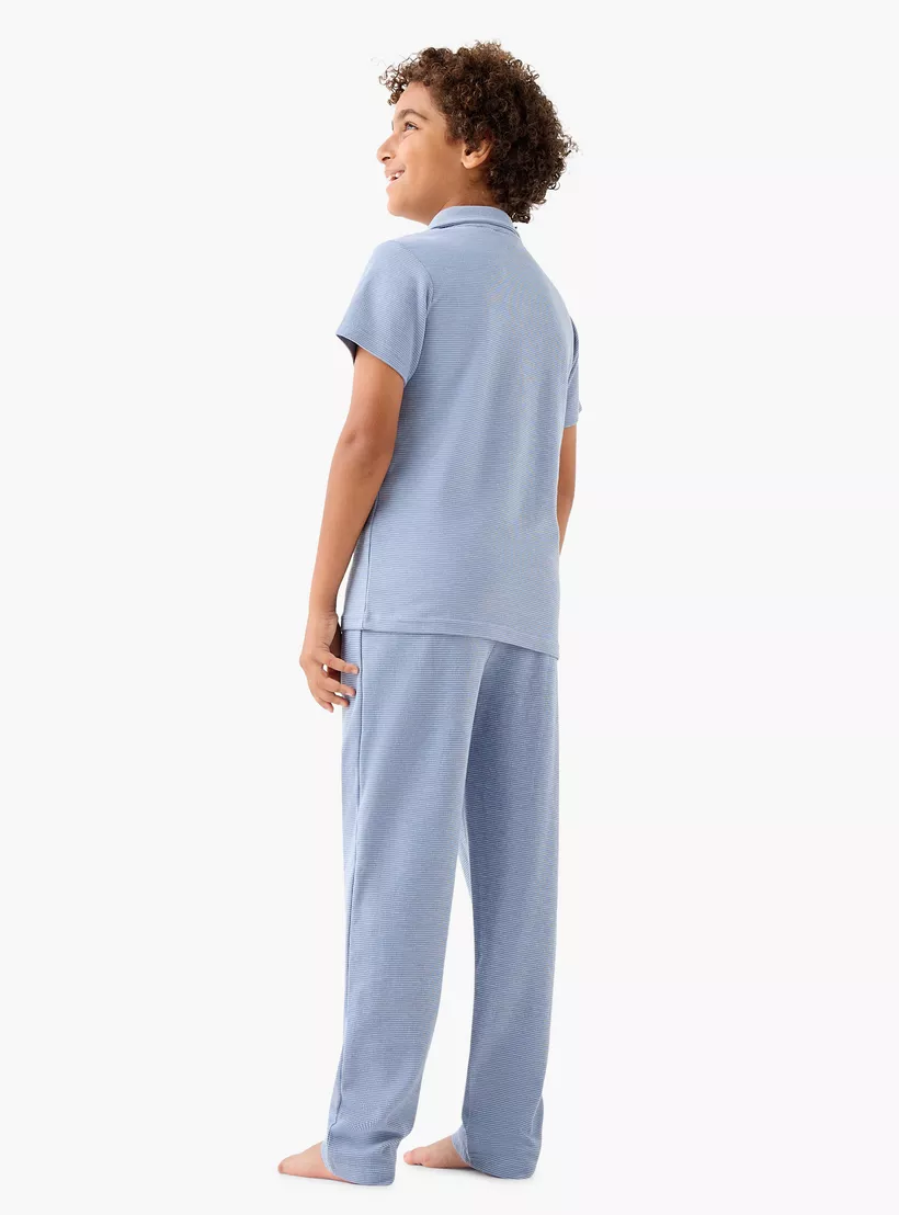 Two-Piece Set: Includes a textured shirt and coordinating pyjama bottoms for a complete look.
