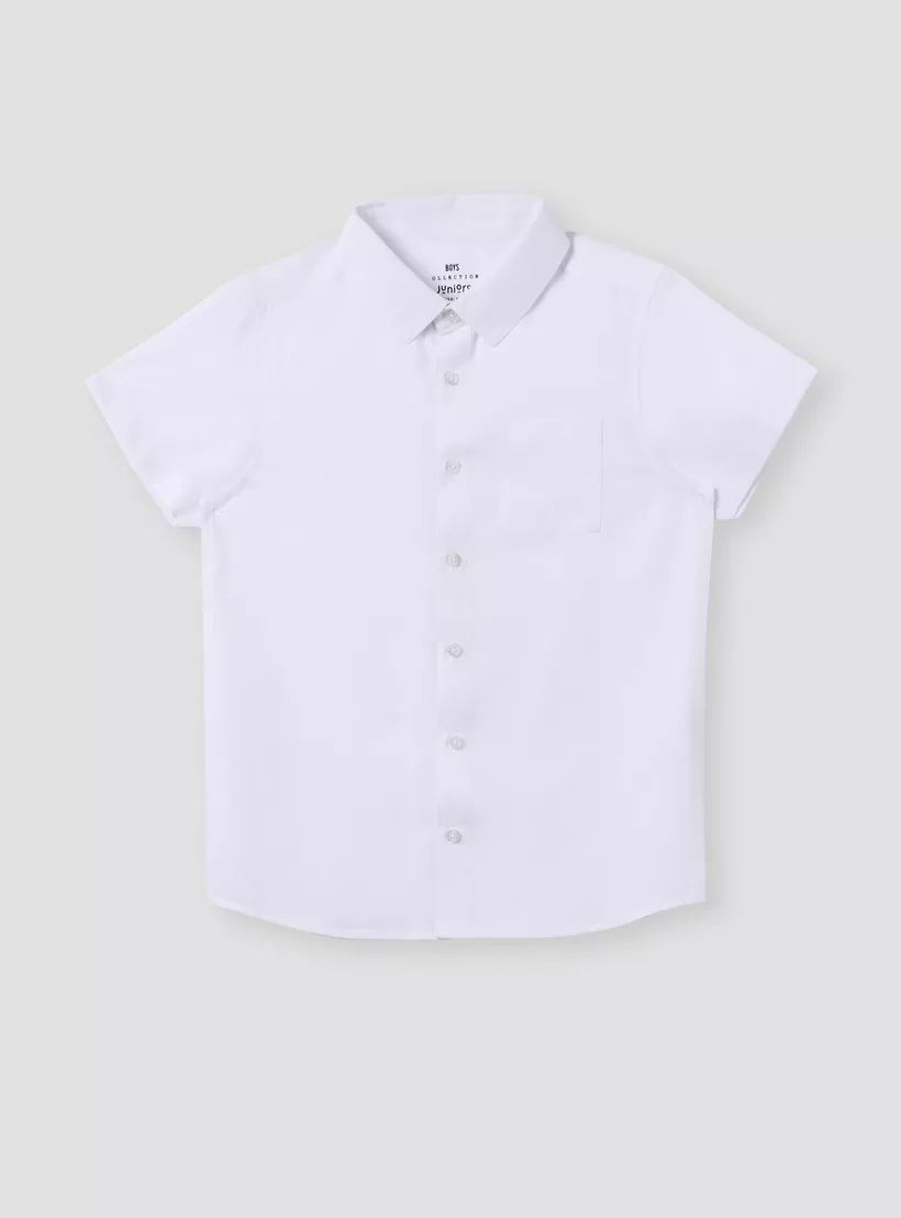 Juniors Textured Shirt with Short Sleeves and Pocket