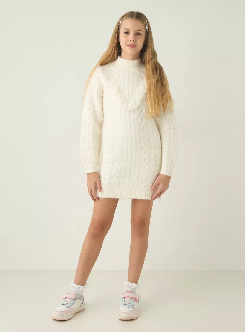 The Juniors Textured Sweater with High Neck and Long Sleeves is a stylish winter essential designed for both comfort and warmth. Made from a soft, breathable fabric with a unique textured finish, this sweater keeps juniors cozy while adding a modern, fashionable touch. The high neck provides extra protection against chilly winds, while the full sleeves ensure complete coverage, making it perfect for everyday wear, school, or casual outings.