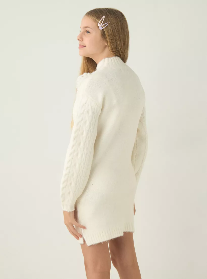 Juniors Textured Sweater with High Neck and Long Sleeves