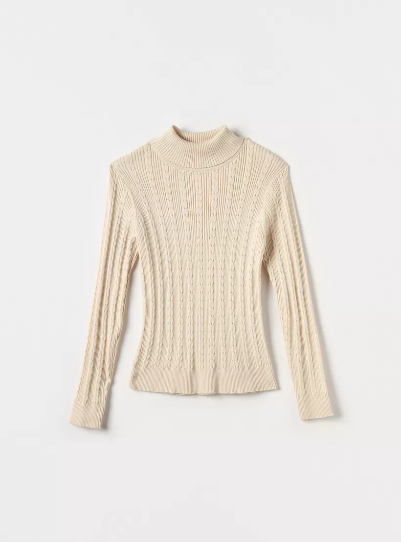 Juniors Textured Turtleneck Sweater with Long Sleeves