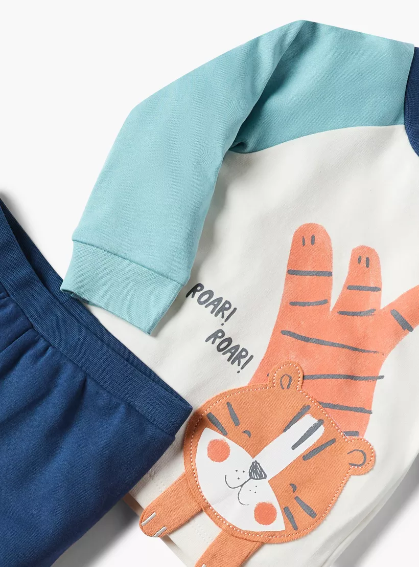 Let your little one lounge in comfort and style with the Juniors Tiger Applique Detail Pyjama Set. This adorable two-piece set features a long-sleeved T-shirt with a fun and playful tiger applique on the front, paired with comfy elasticated pyjama bottoms. Made from soft, breathable cotton-rich fabric, this set is perfect for cozy nights or playful mornings. Whether it’s bedtime or just a relaxed day at home, this set brings together comfort and cuteness.