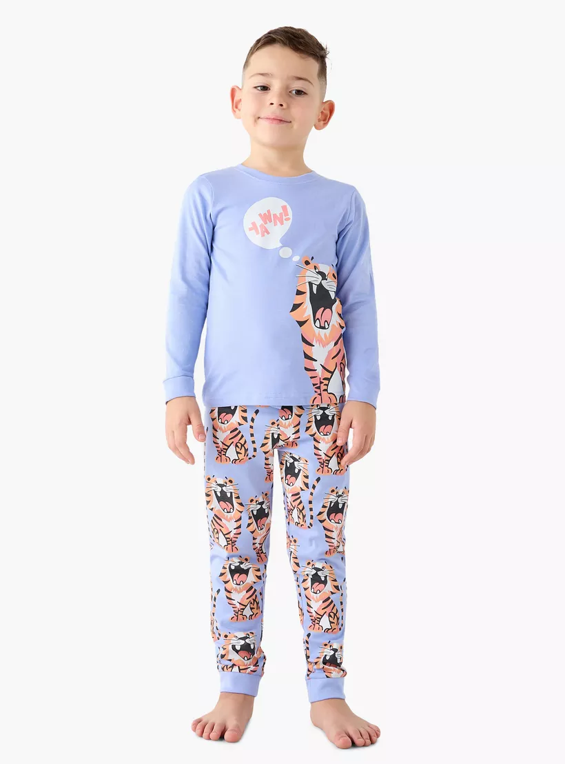 The Juniors Tiger Print Long Sleeve T-shirt and Pyjama Set is a stylish and comfortable sleepwear choice designed for little ones who love fun prints. Made with soft, breathable fabric, this set ensures comfort all night long while keeping kids cozy during cooler evenings. The eye-catching tiger print on the T-shirt adds a playful charm, perfectly matched with coordinating pyjama bottoms for a complete look. Whether for bedtime or lounging at home, this set combines comfort, durability, and trendy design.