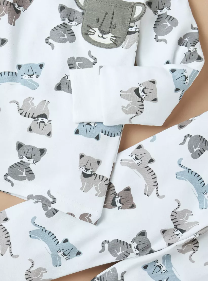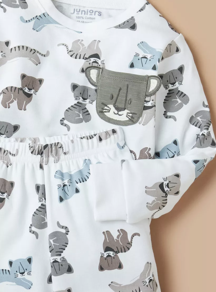 Dress your little tiger for a night of sweet dreams with this adorable pyjama set. Crafted from soft cotton for ultimate comfort, these pyjamas feature a fun tiger print that is sure to bring a smile to your little one’s face. The set includes a long-sleeved t-shirt and a pyjama both with elasticated waistbands for a snug fit.
