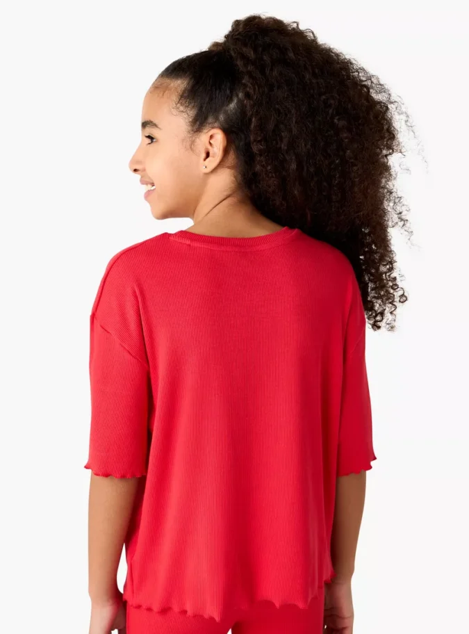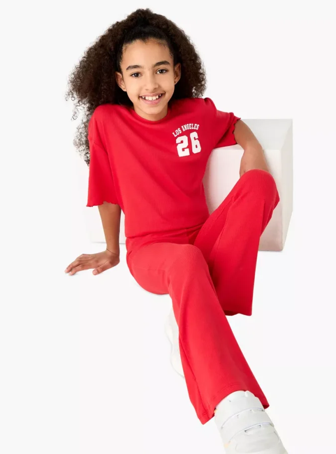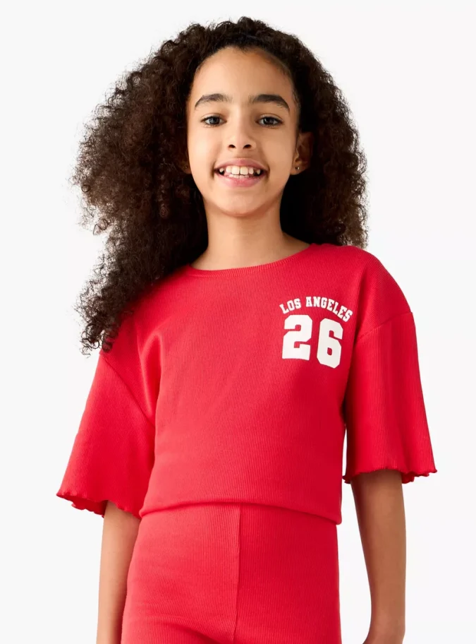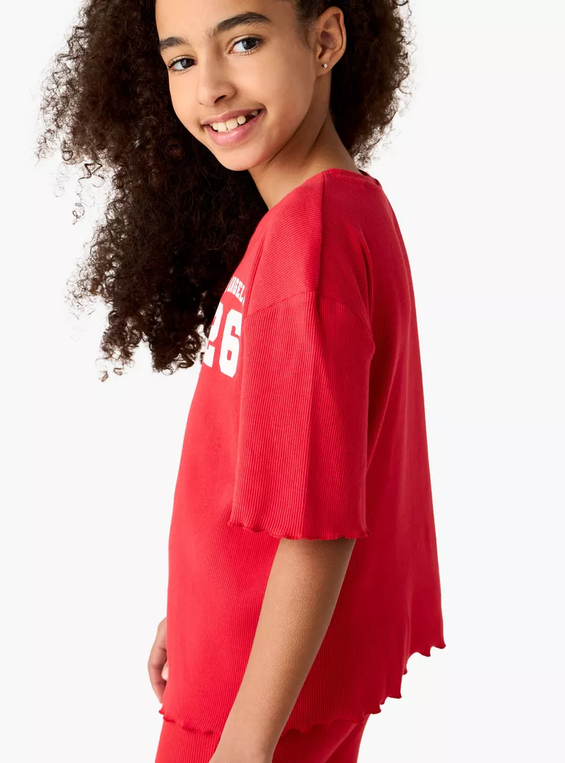 Juniors Varsity Print Crew Neck T-shirt with Lettuce Hem