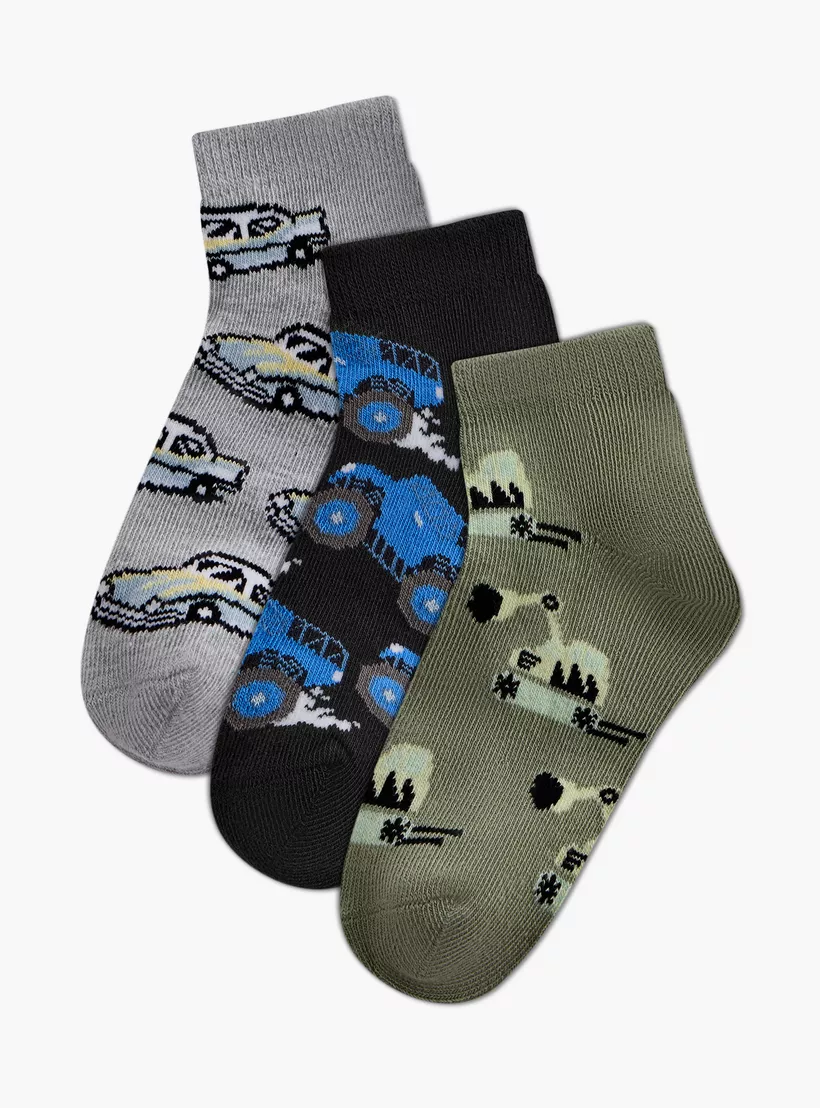 Juniors Vehicle Print Ankle Length Socks – Set of 3