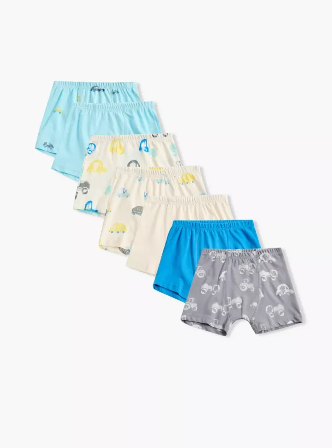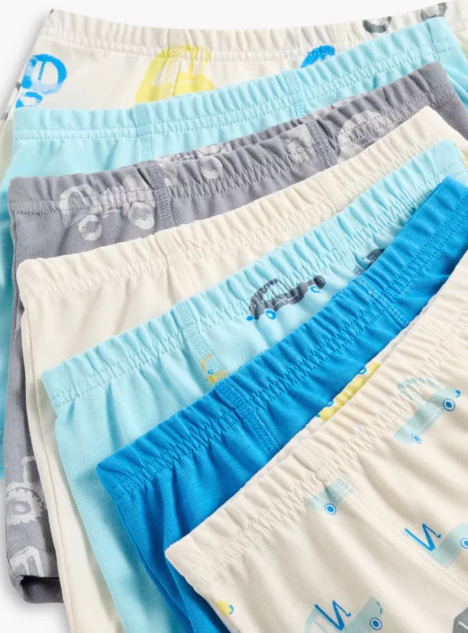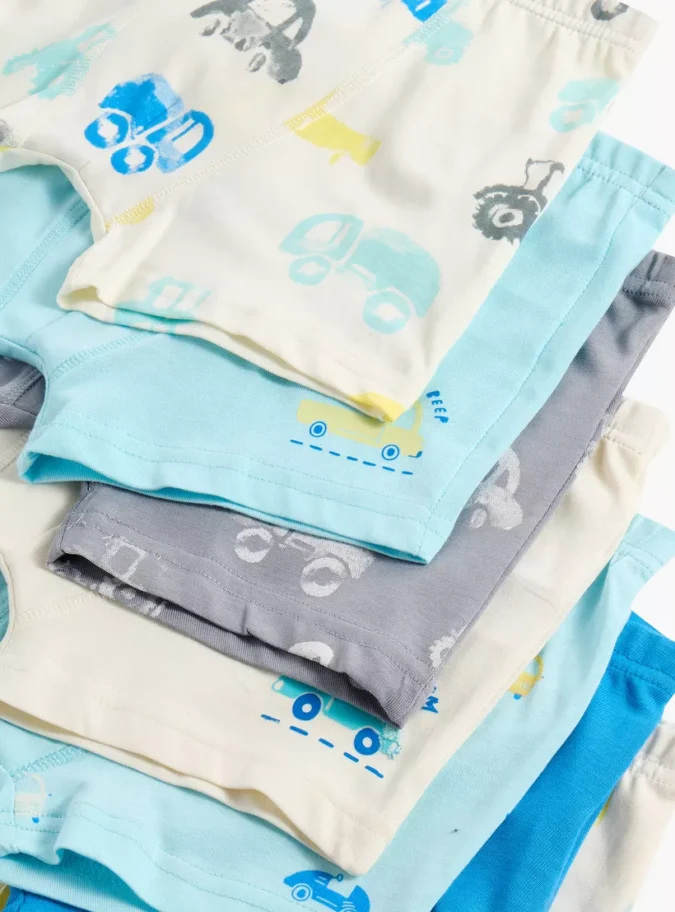 Juniors Vehicle Print Boxer Briefs with Elasticated Waistband – Set of 7