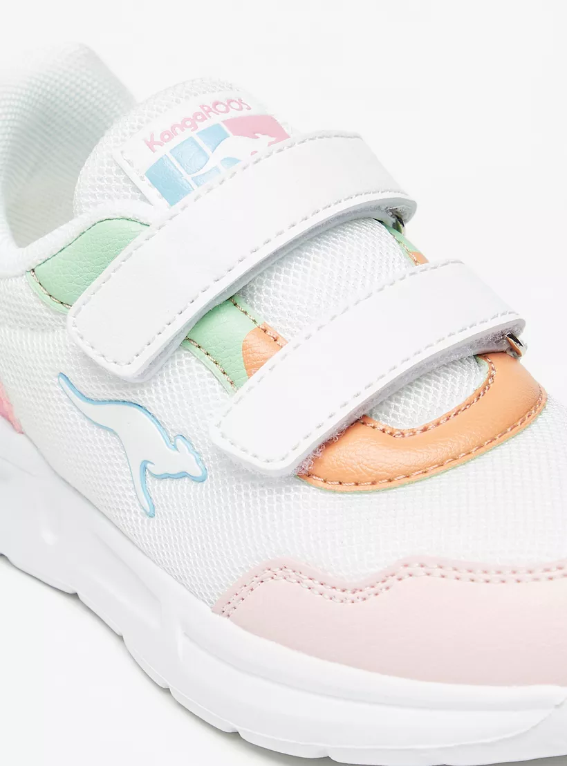 Upgrade your girl’s footwear collection by grabbing this trendy pair of sneakers that are designed in an elegant colourblock tone. This pair of sneakers features a logo accent for added appeal. These sneakers are fastened with the help of two hook and loop closures for a snug fit.