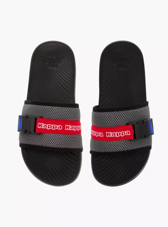 Kappa Boys’ Logo Print Slides with Buckle Detail