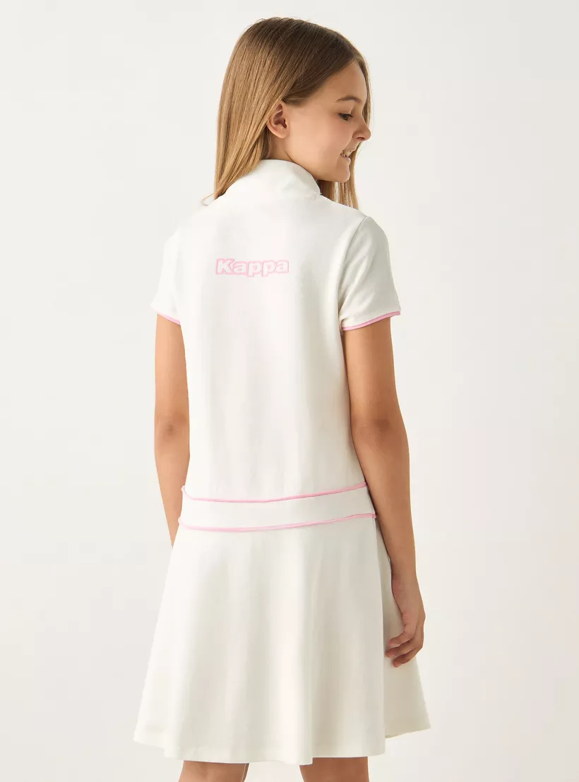 Kappa Logo Detail High Neck A-line Dress with Short Sleeves