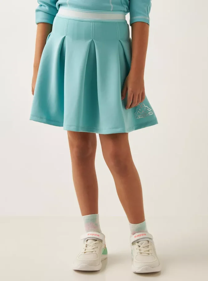 Kappa Logo Foil Print Knee Length Skater Skirt with Box Pleats