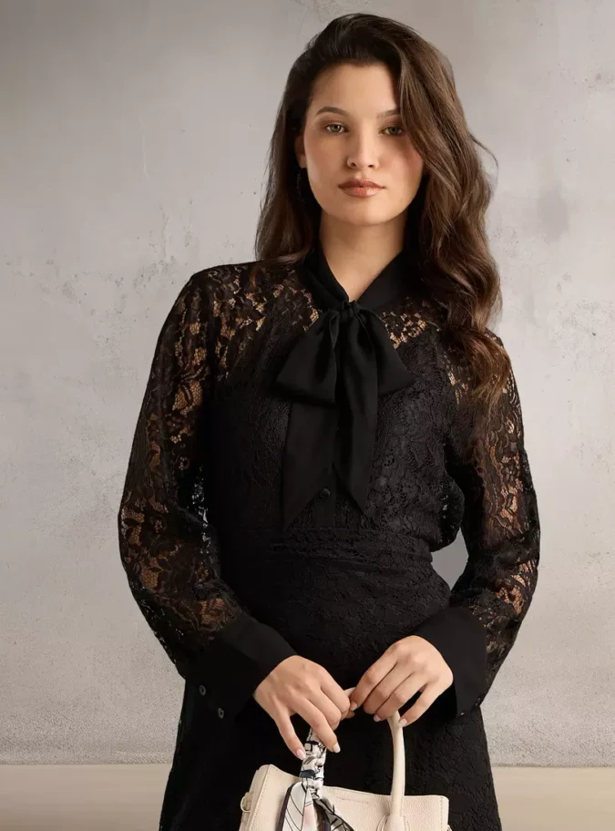 Charming Neck Tie: Stylish tie-neck design adds a refined, feminine touch.