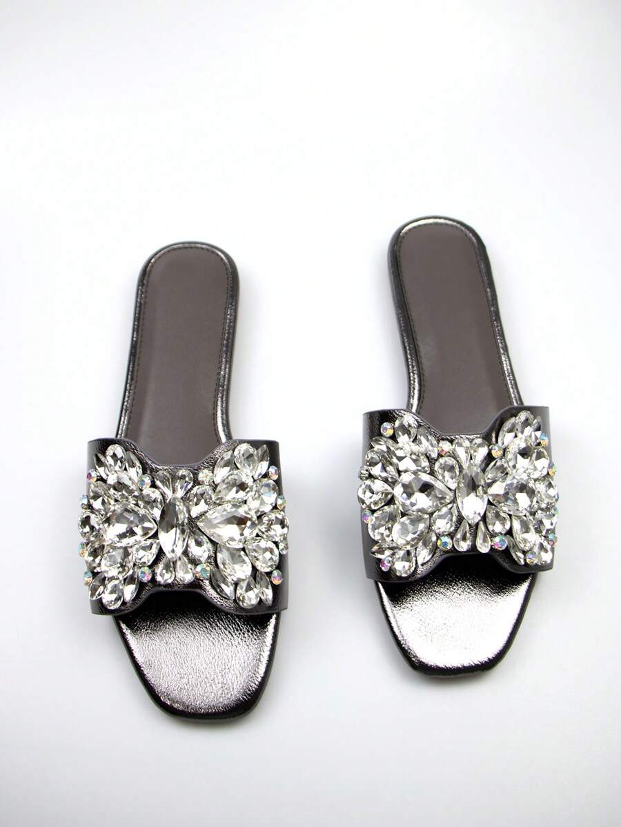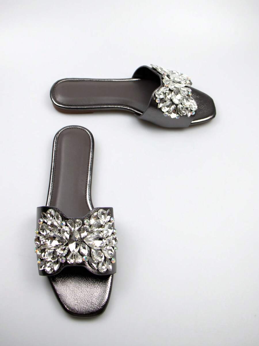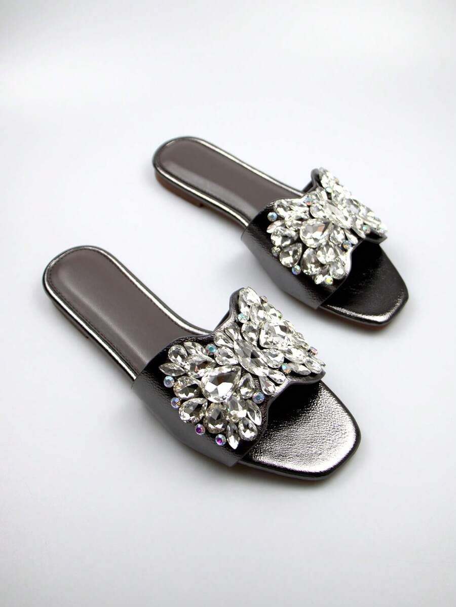 The square-toe design offers a modern and trendy look, while the comfortable flat sole ensures all-day ease. Whether paired with a cocktail dress, jeans, or a summer skirt, these sandals will effortlessly enhance your ensemble with their shiny, eye-catching details. Step out in confidence and grace with these stylish, versatile flats!