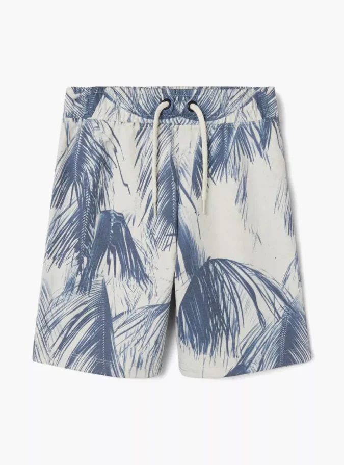 Leaf Print Shorts with Drawstring Closure