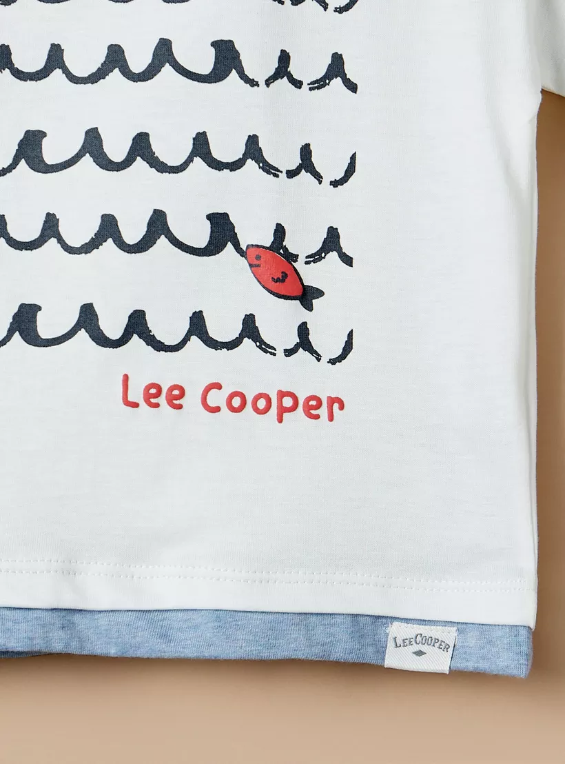 Lee Cooper Graphic Print T-shirt with Short Sleeves and Crew Neck