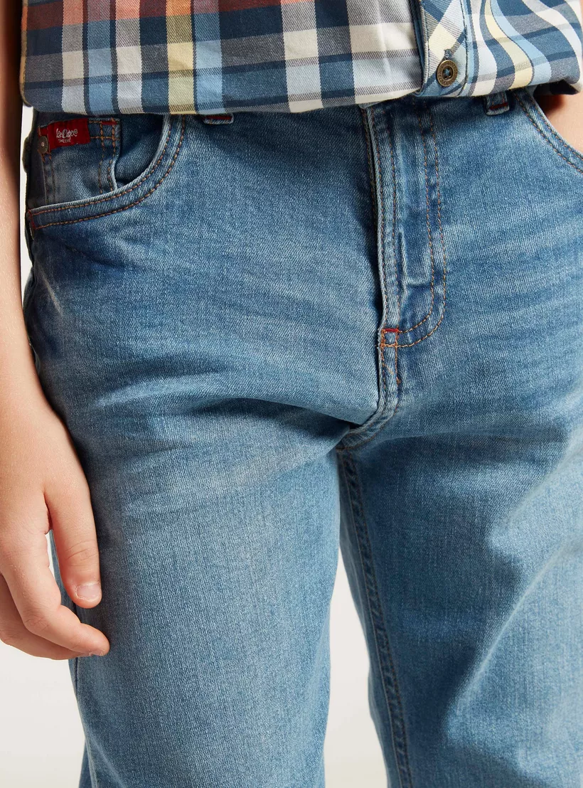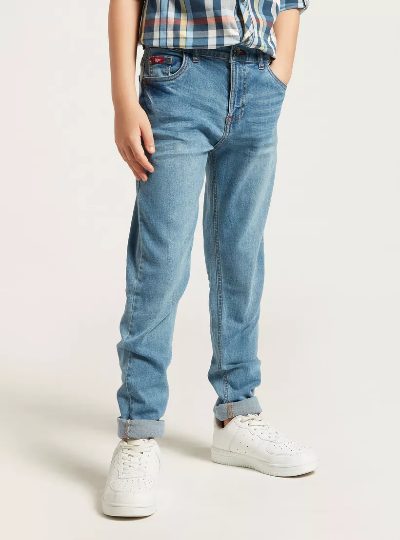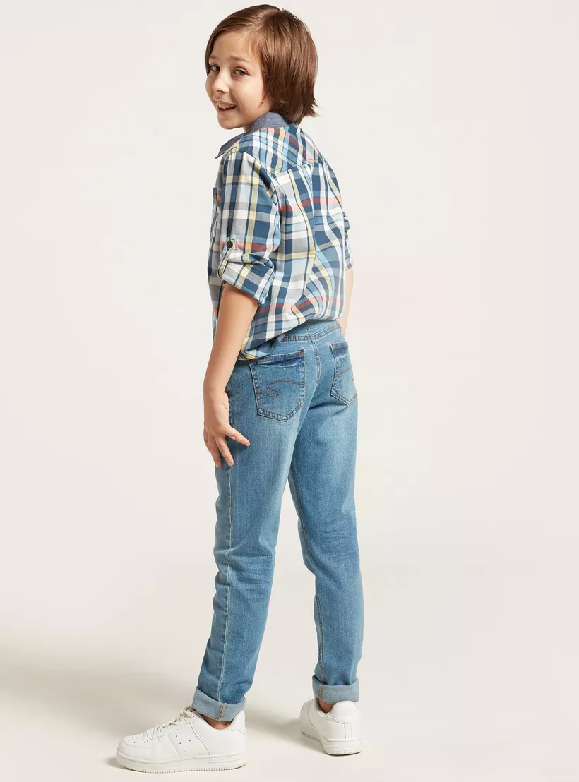 Let your young boy be happy and look sophisticated with these classic solid denim jeans. The full length, button closure and belt loops offer a comfortable feel. The many pockets offer convenience and serve great looks at the same time.