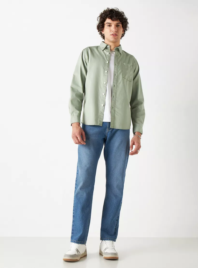 Lee Cooper Solid Denim Shirt with Long Sleeves