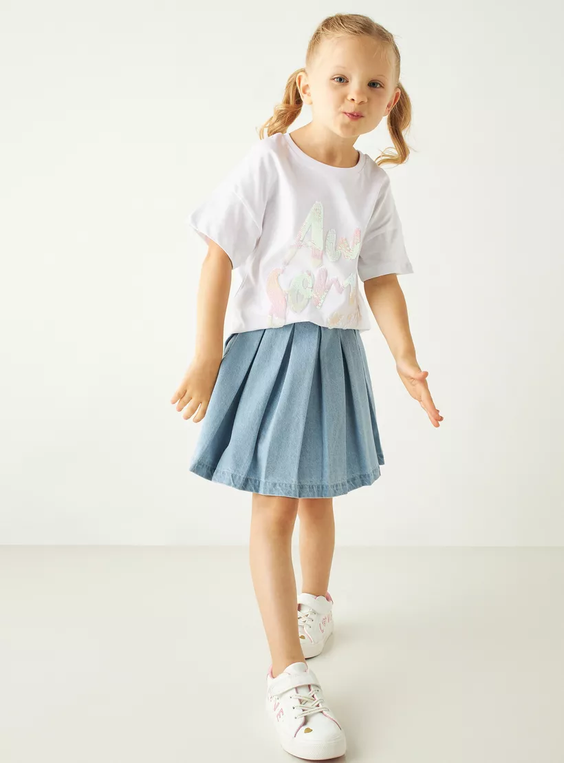 Lee Cooper Solid Pleated Denim Skirt