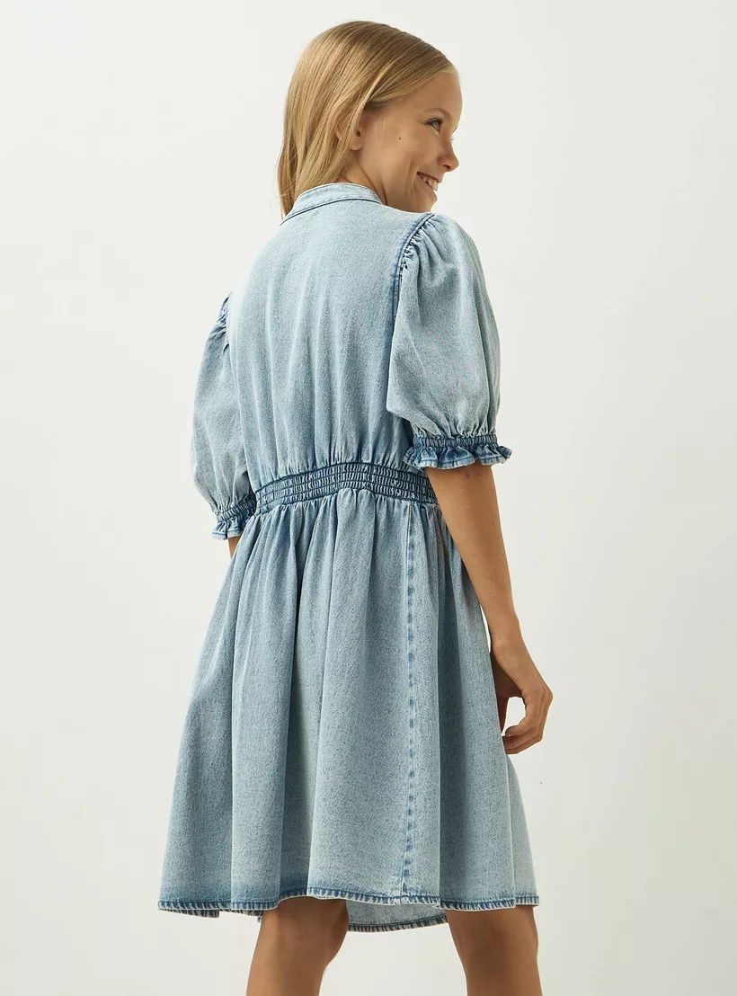 Your daughter will look exceptional in this stylish mandarin collared dress from Lee Cooper. Perfect for any casual occasion, this dress features a comfortable A-line fit and puff sleeves that will keep her cool and comfortable all day long. Made from soft cotton, this button-down dress is sure to become a favourite in her wardrobe.