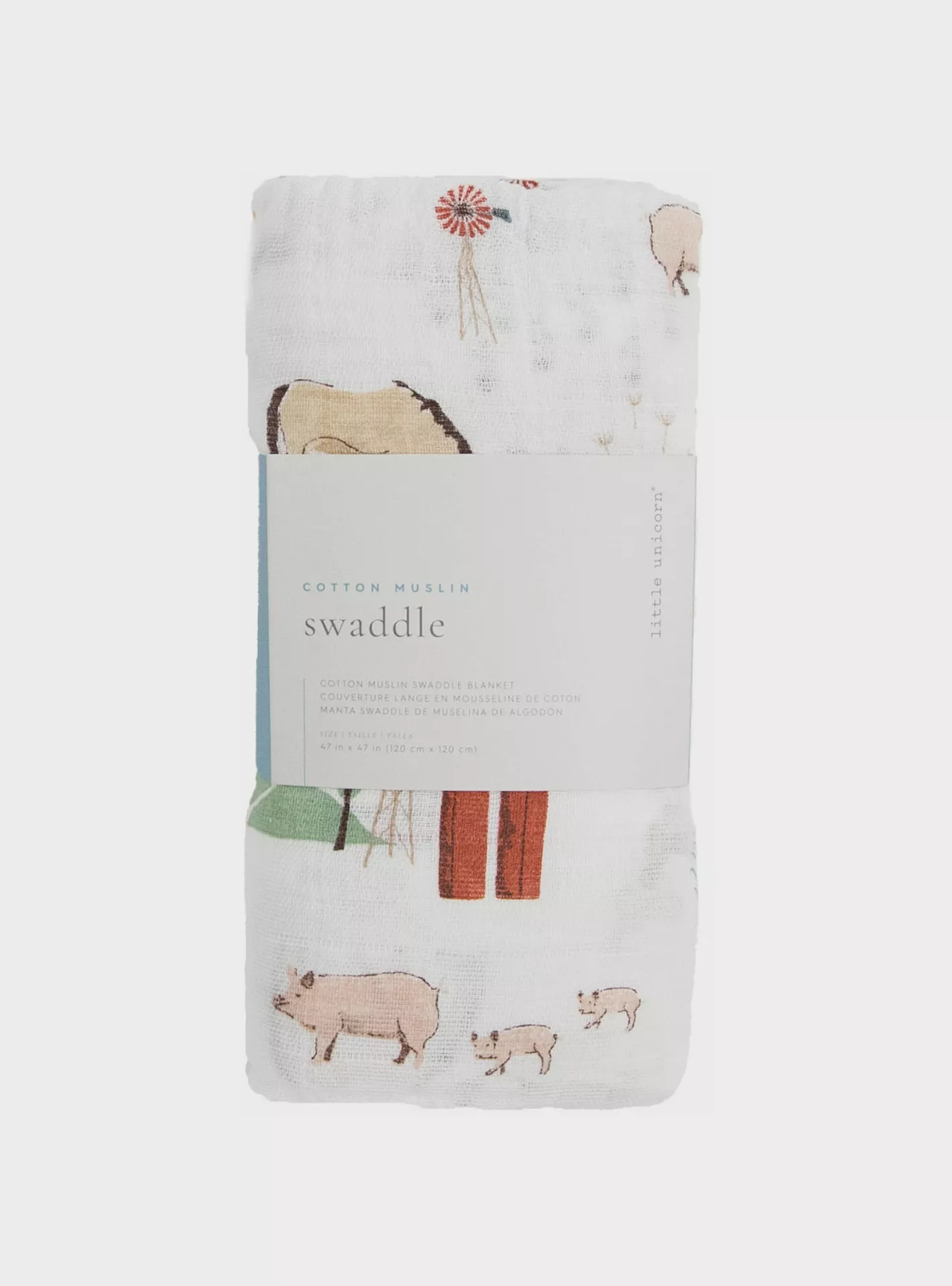 Little Unicorn Cotton Muslin Swaddle, Single, Farmyard