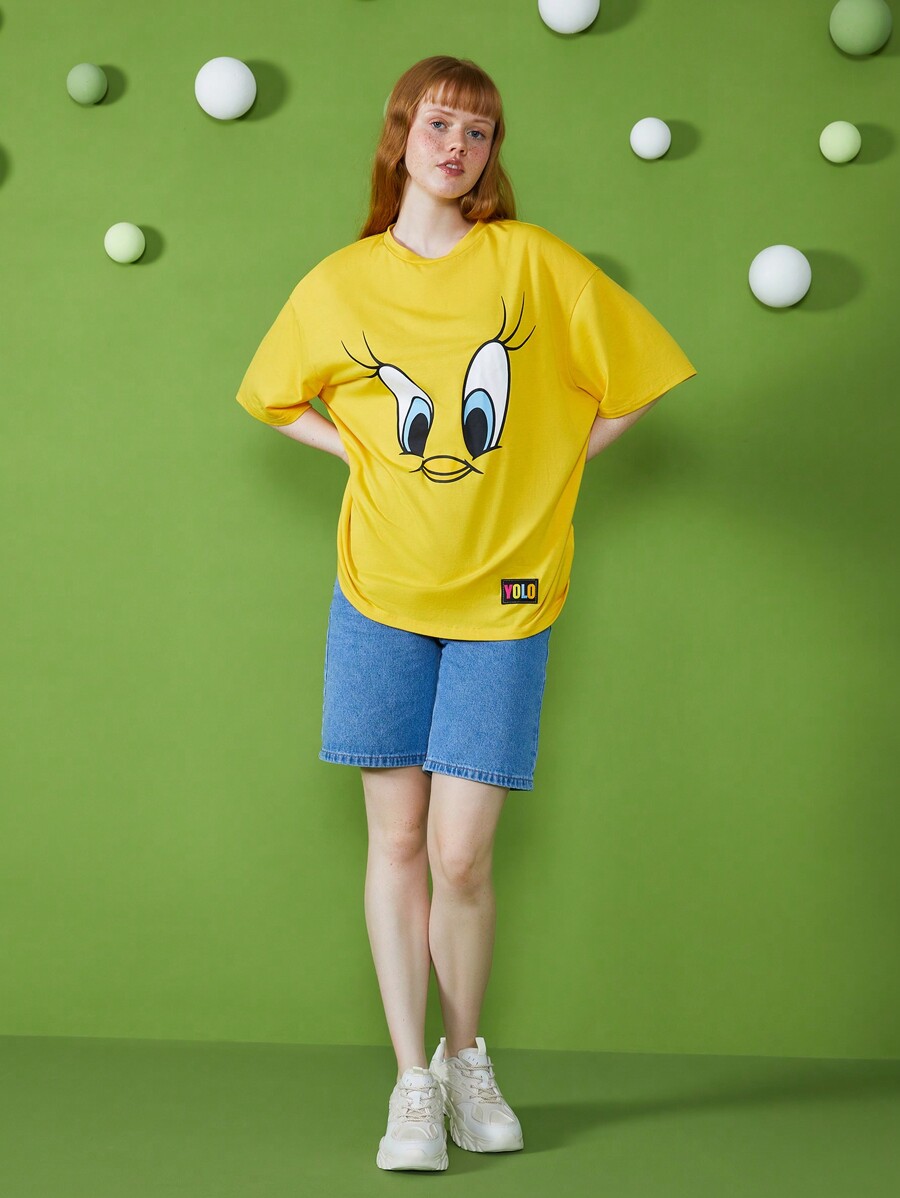 / LOONEY TUNES X SHEIN Cartoon Graphic Drop Shoulder Tee