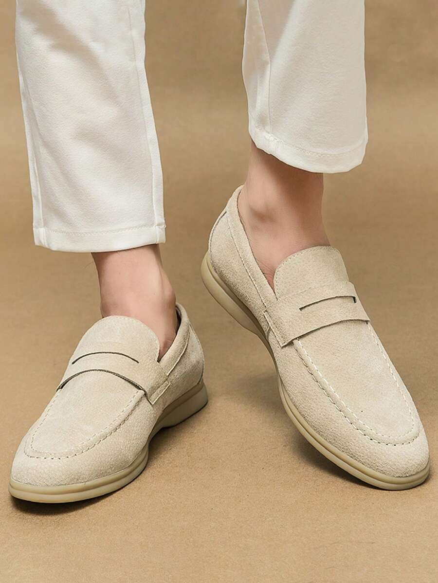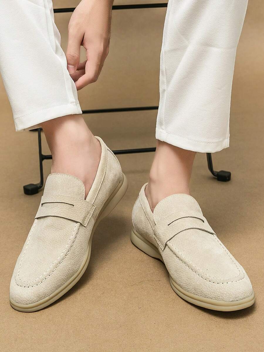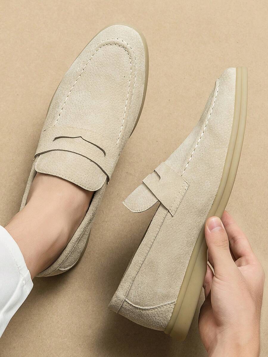 Luxury Men’s Slip-On Penny Loafers, Solid Color Faux Suede Casual Shoes, Soft & Breathable