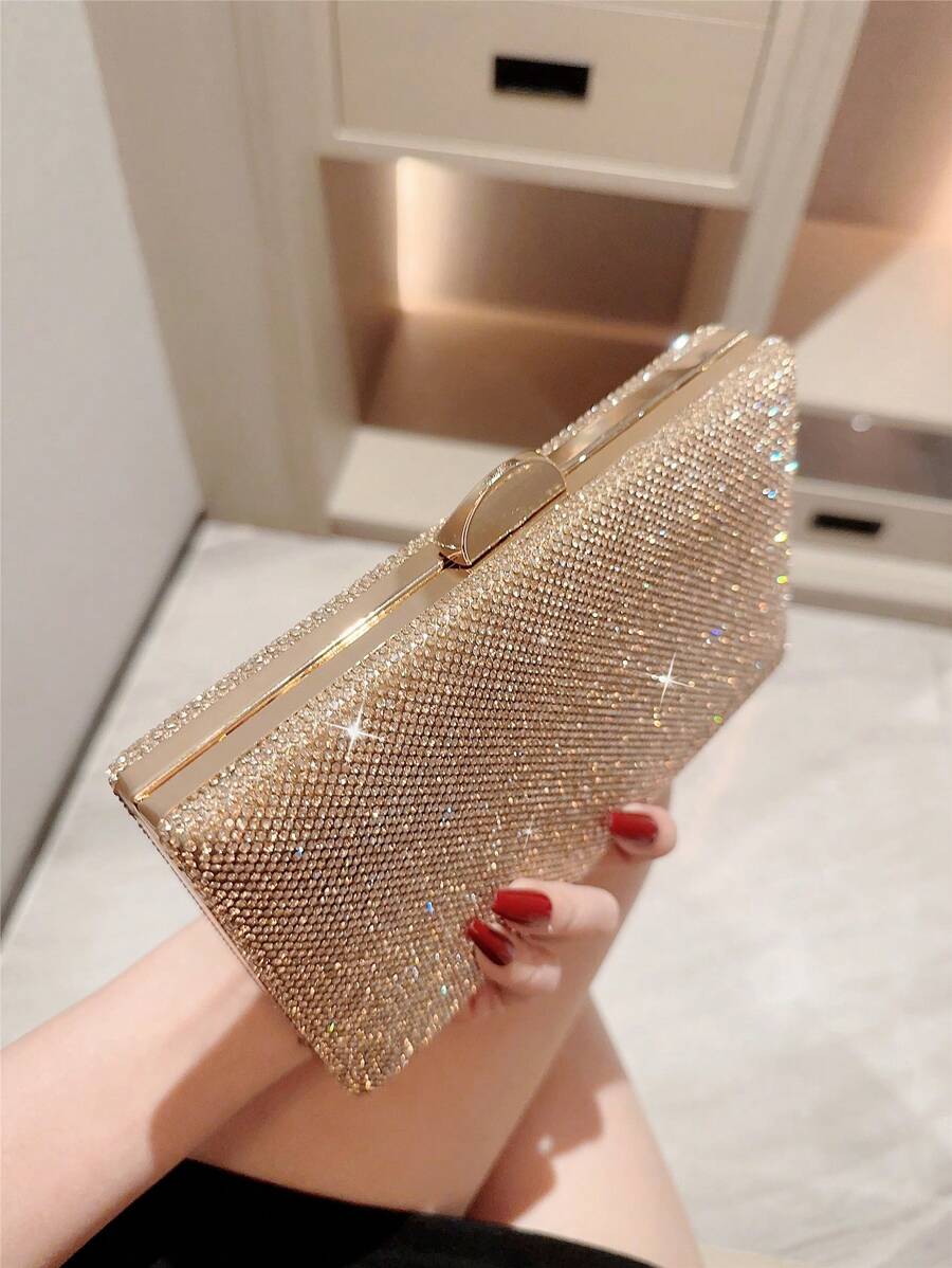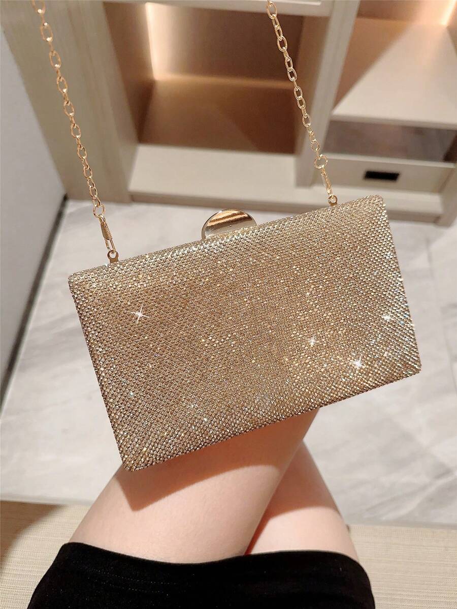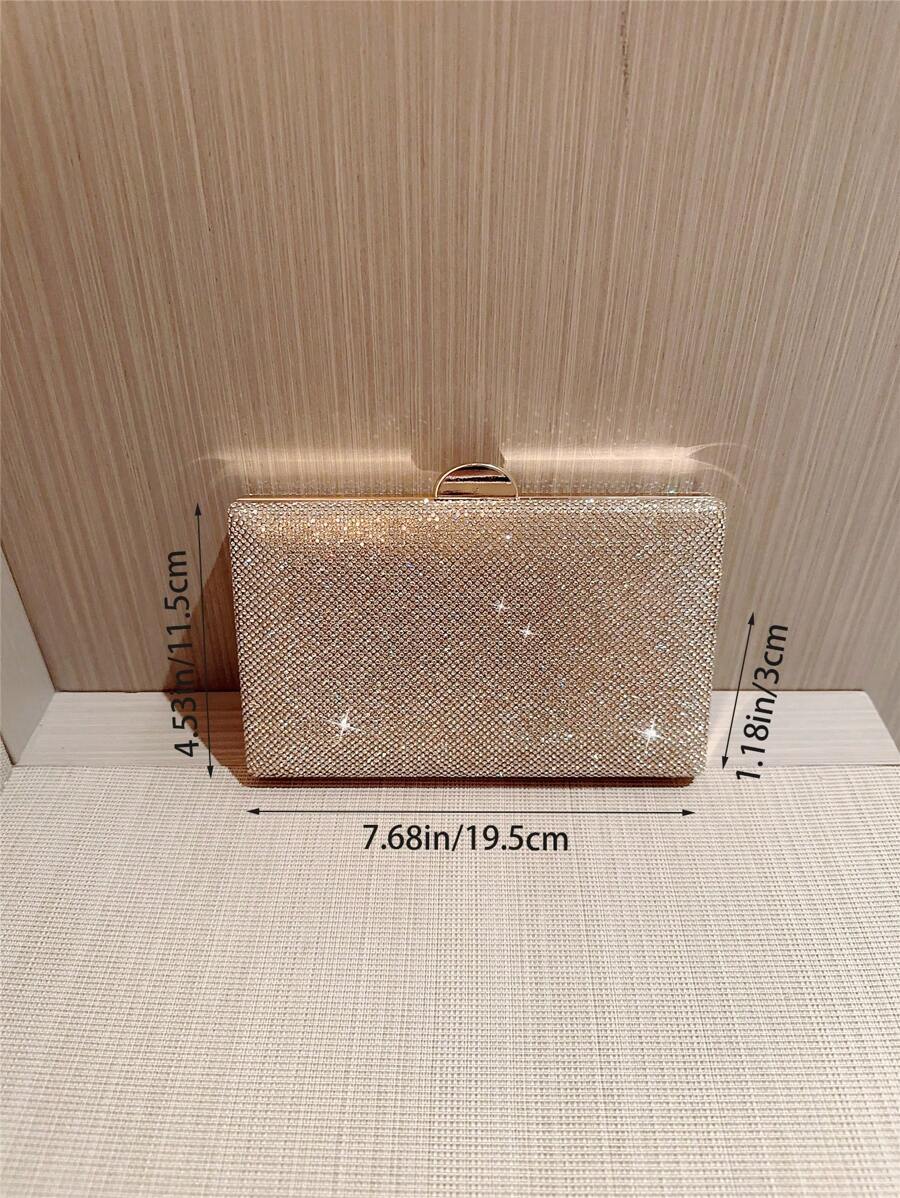 Make a dazzling statement with the Luxury Sparkling Rhinestone Evening Bag, a stunning accessory designed for unforgettable moments. With its box-shaped silhouette and shimmering rhinestone exterior, this elegant clutch effortlessly blends romance and glamour. The radiant gold tone adds a touch of luxury, making it the perfect companion for weddings, formal events, or evening parties. Whether you’re the bride or a guest, this eye-catching bag complements your look with grace and sophistication.