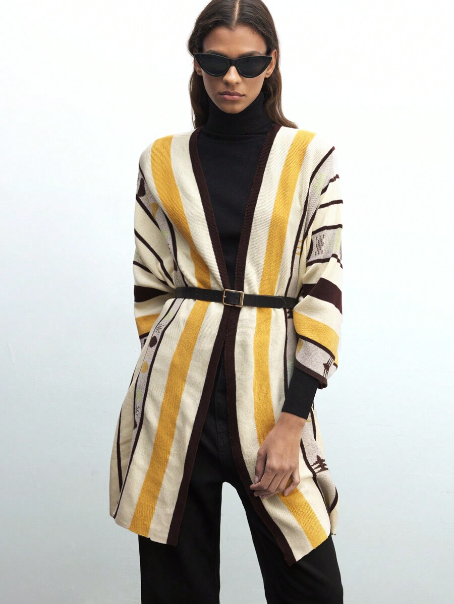 Maija Women Loose Fit Striped Batwing Sleeve Casual Knit Cardigans, Autumn & Winter