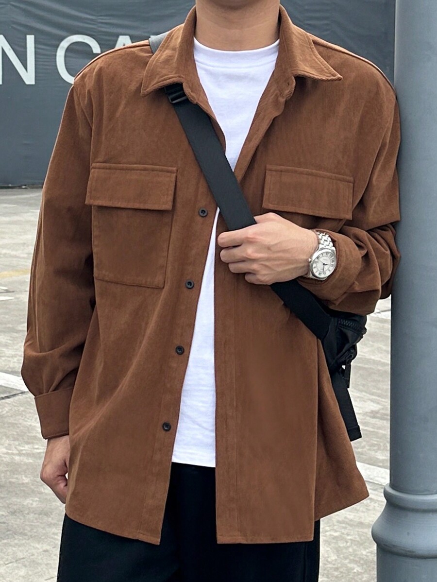 / Manfinity Dauomo Men’s Casual Solid Color Cargo Pocket Shirt, Autumn