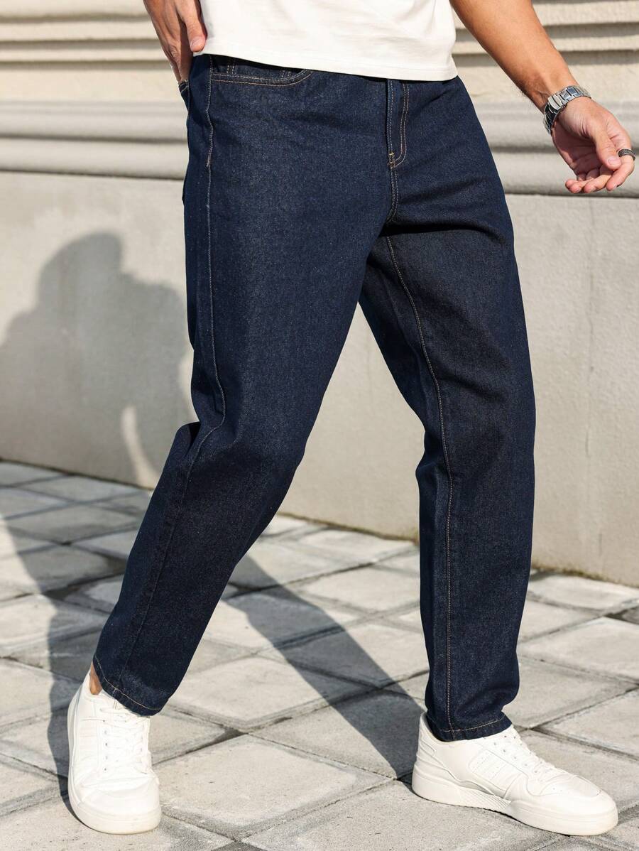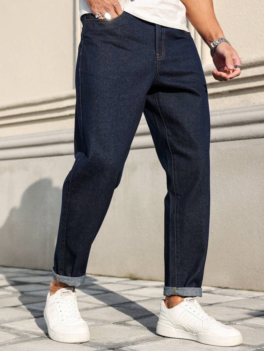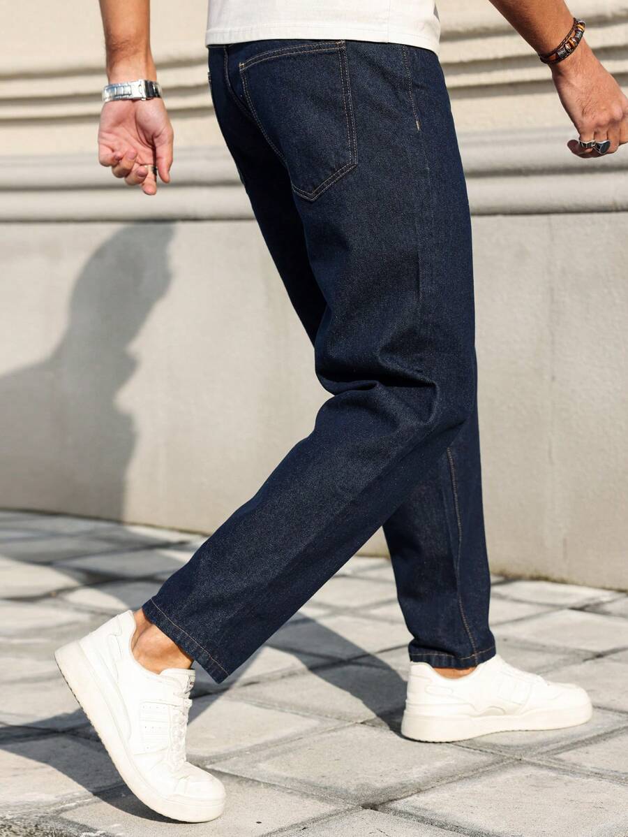 Manfinity Homme Men’s Front Button Pocket Simplistic Denim Jeans, Casual Everyday Wear