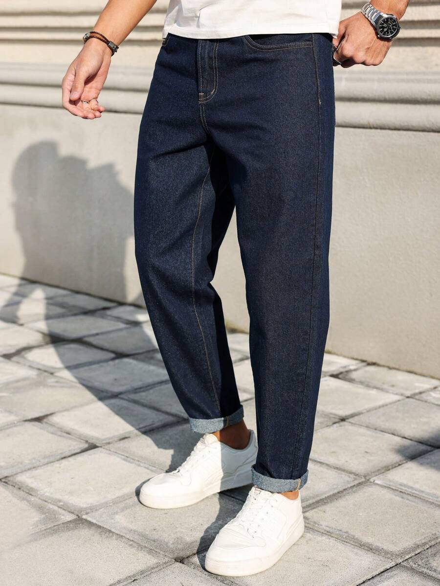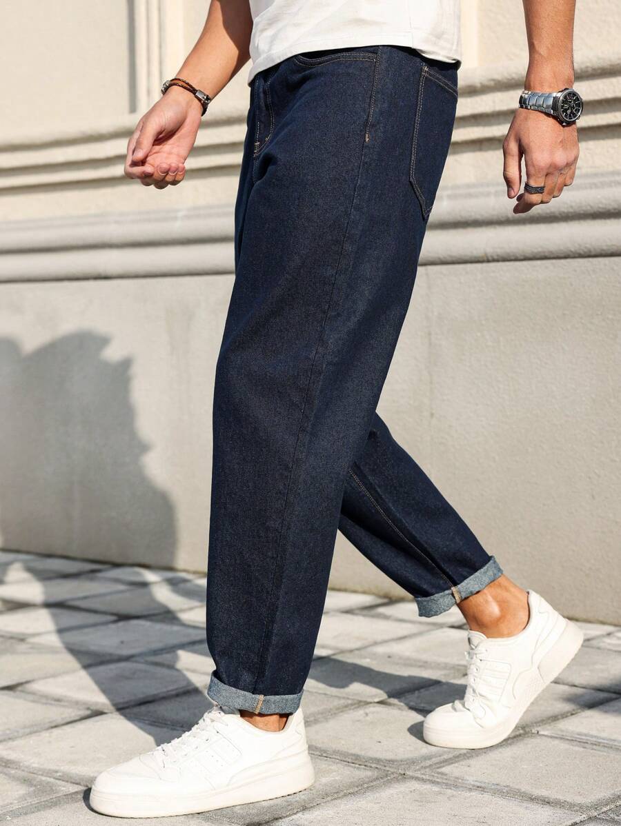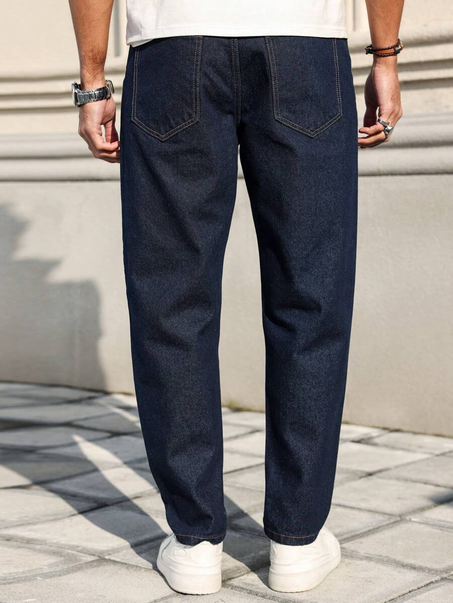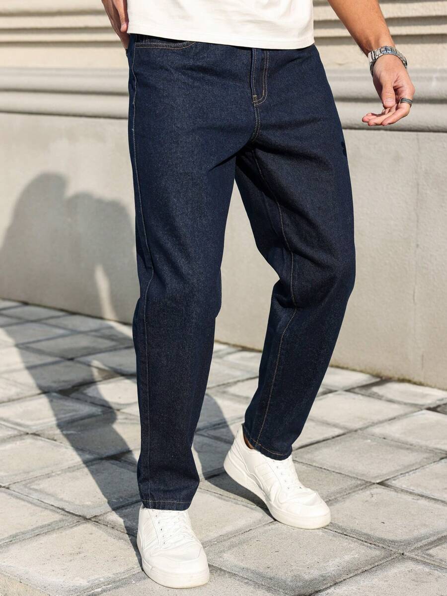Manfinity Homme Men’s Front Button Pocket Simplistic Denim Jeans, Casual Everyday Wear